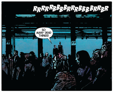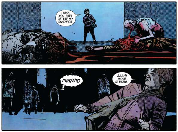 There’s some…quirkiness to Romero’s storytelling. We have some new elements that so far feel a bit shoe-horned in to his zombie-centric world. These fanged folks feel out a bit out of place, yet not out of taste if that makes sense. While I fail to get excited about this plot twist, it still leaves me wanting to read more just to see what he has planned.