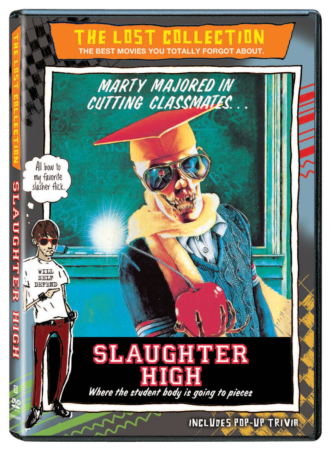 Anyhoo, this disc comes as a part of Lions Gate's new "The Lost Collection", which apparently includes "Pop-Up Trivia" as part of the disc. Find details on that below, followed by the "Slaughter High" trailer and a hi-res look at the slick DVD art below that. I will most likely be checking it out again when it comes out, just because I'm a masochist like that. So expect a review in April.